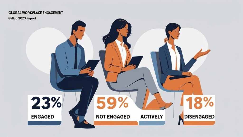 Não se trata apenas de uma percepção subjetiva. O Relatório "State of the Global Workplace" da Gallup (2023) oferece uma visão clara e alarmante. Segundo esta pesquisa, realizada com milhares de trabalhadores em todo o mundo: