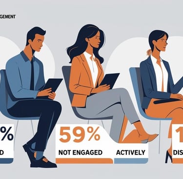 O lado oposto revela a magnitude do problema: 59% dos trabalhadores estão "não engajados". São os "fantasmas corporativos", que cumprem horário sem paixão ou conexão, apenas navegando na superfície.