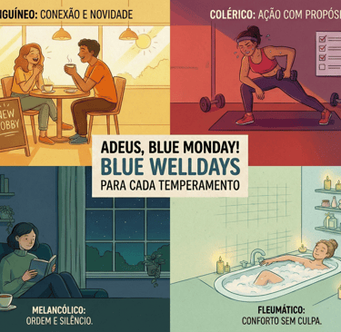Mas aqui no Temperamento em Ação, a gente não foca no problema, e sim na solução. A tendência para 2026 não é aceitar a tristeza, mas transformá-la. É o conceito de Blue Welldays: transformar esses dias difíceis em dias de cuidado intencional.